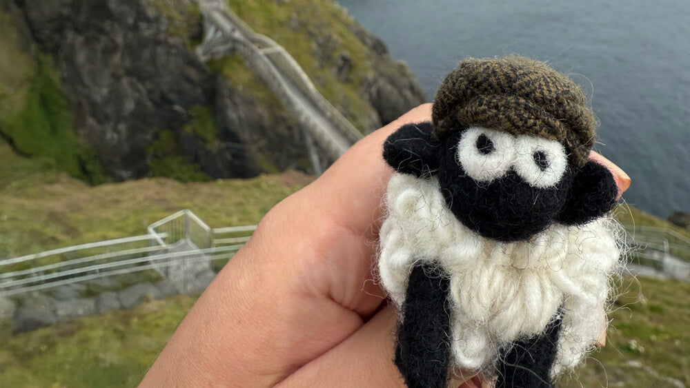 Knitted Sheep Keyring Mountain Blackface With Grey Tweed Flatcap